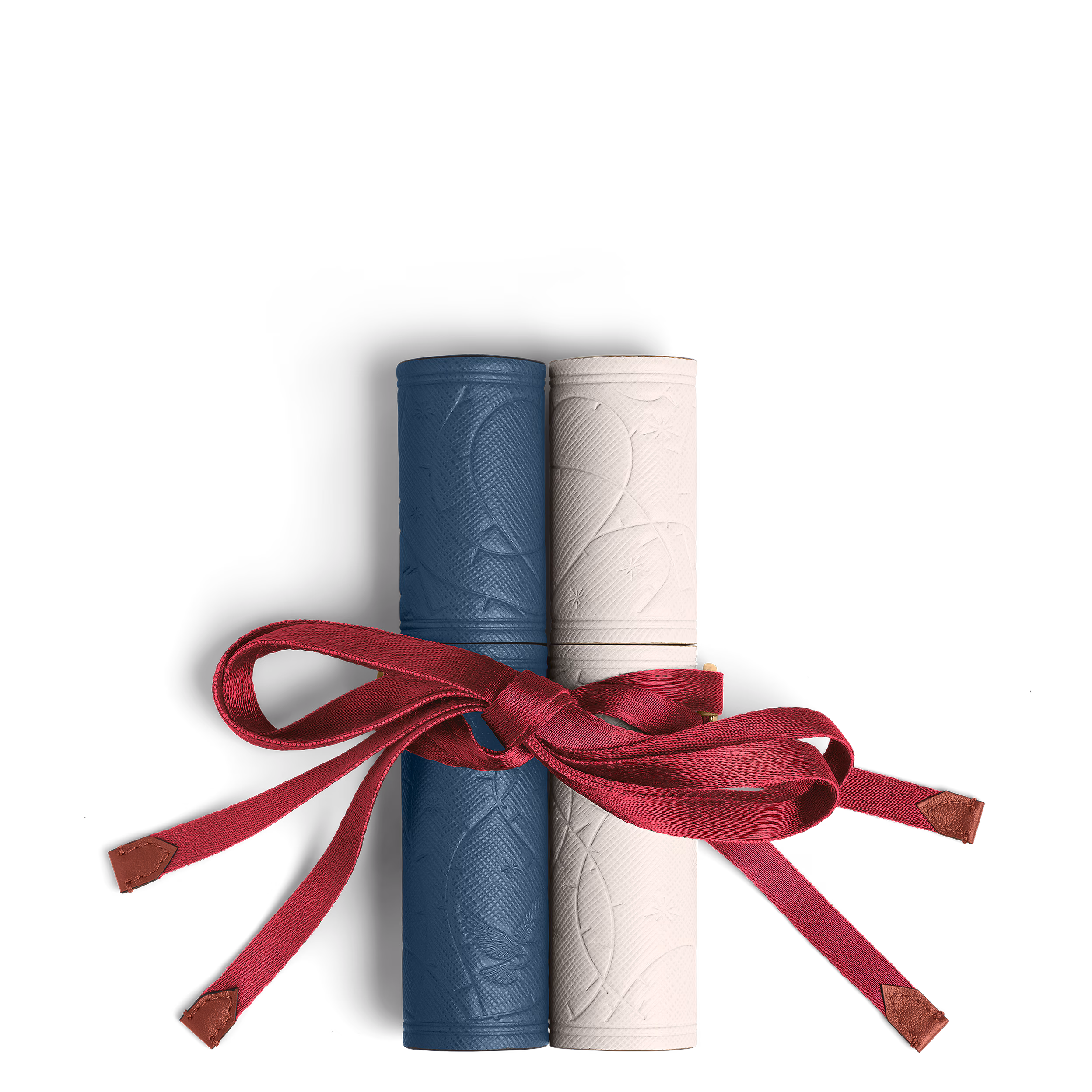 Feiern Sie die zeitlose Liebesgeschichte von Romeo und Julia mit diesem exquisiten Etui für Schreibgeräte. Dieses Set, das von Shakespeares berühmtem Theaterstück inspiriert ist, umfasst zwei separate Schreibgeräteetuis, die die Vereinigung der unglücklichen Liebenden symbolisieren. Jedes röhrenförmige Etui, zusammengebunden mit einem leidenschaftlich roten Band, das ihre ewige Liebe symbolisiert, kann auch separat getragen werden. Ein Etui aus elfenbeinfarbenem Leder mit zarter Prägung verkörpert Julias Anmut und Reinheit. Das andere, aus dunkelgrünem, hochwertigem Leder, steht für Romeos leidenschaftlichen Geist. Dieses Set ist eine Hommage an die unvergängliche Kraft der Liebe und eine elegante Möglichkeit, Ihre wertvollen Schreibgeräte zu schützen.